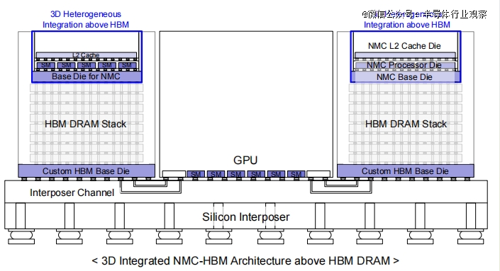 HBM5最颠覆的设计,是在“Core Die堆叠”上面加了两层“计算芯片”:一层是“NMC处理器”(近内存计算单元),一层是“L2缓存”——简单说,就是给内存装了个“迷你GPU”,能处理简单的计算任务。