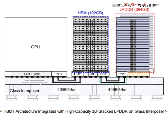 除了HBF,HBM7还支持“3D堆叠LPDDR”——把LPDDR芯片也垂直堆叠起来,单模块容量480GB,专门用于边缘设备(比如自动驾驶汽车的本地计算单元)。这些设备不需要HBF的超大容量,但需要“低成本+低功耗”,3D堆叠LPDDR正好满足需求。