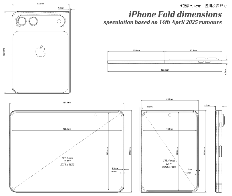 苹果对折叠屏手机的信息严防死守,但不出意外还是被渗透成了筛子。今年3月,果链专家郭明錤更新爆料,精确到小数点后一位的屏幕尺寸和机身厚度,前所未有地勾勒出折叠iPhone的清晰形态。