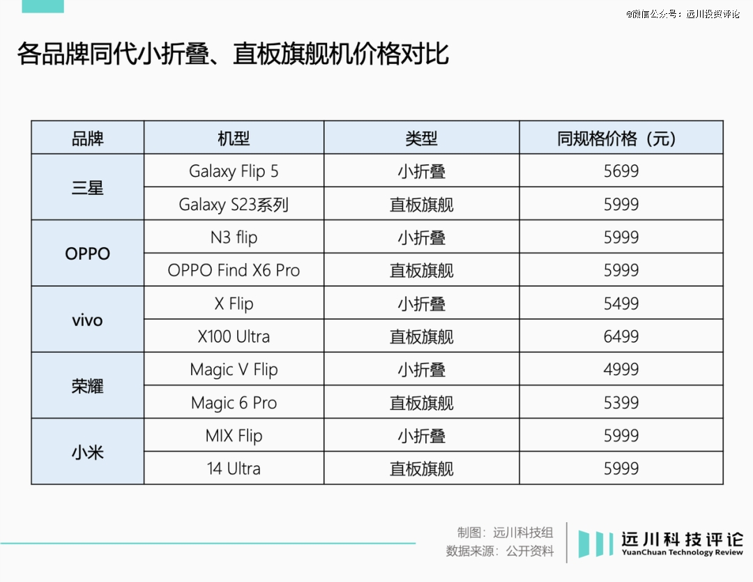 从各家产品线定价来看,小折叠定价不能超过同代直板旗舰,似乎是行业内心照不宣的法则。