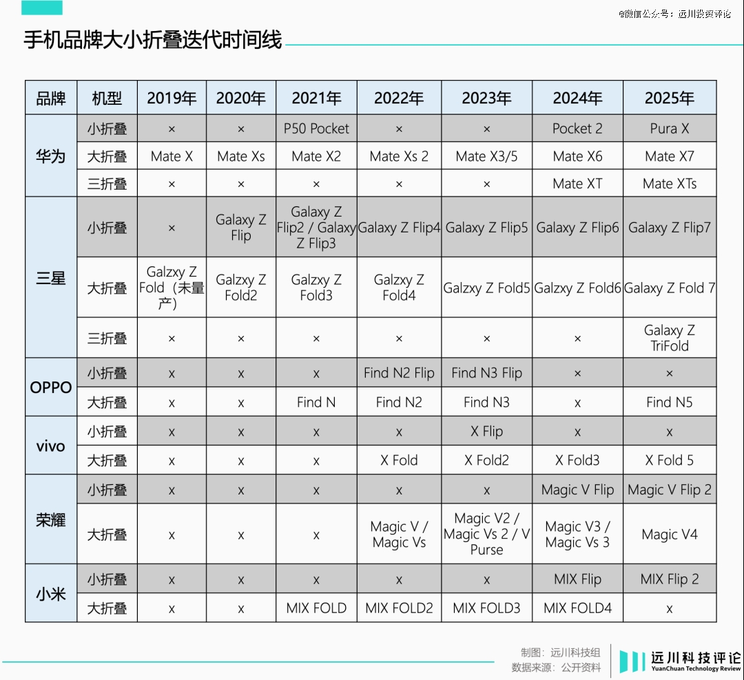 一类是OPPO和vivo,入场比较早退场也比较快,已经客观上砍掉了小折叠;一类是小米和荣耀,入场比较晚依然在坚持;华为相对特殊,对小折叠的定位有一次巨大变化。