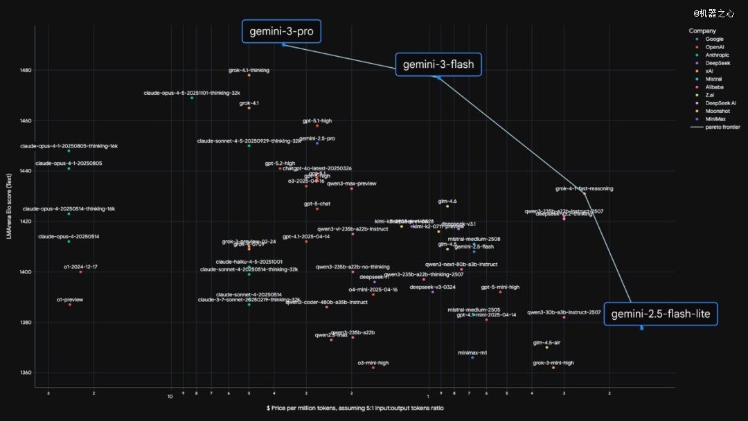 Jeff Dean 表示:「我们再次突破了效率与智能之间的帕累托边界。」