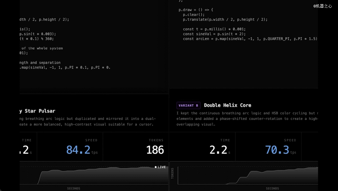 Gemini 3 Flash 在速度和效率上均显著优于 Gemini 2.5 Pro。在上一代模型尚未完成处理之前,Gemini 3 Flash 已经生成了复杂图形、3D 模型以及一个 Web 应用。