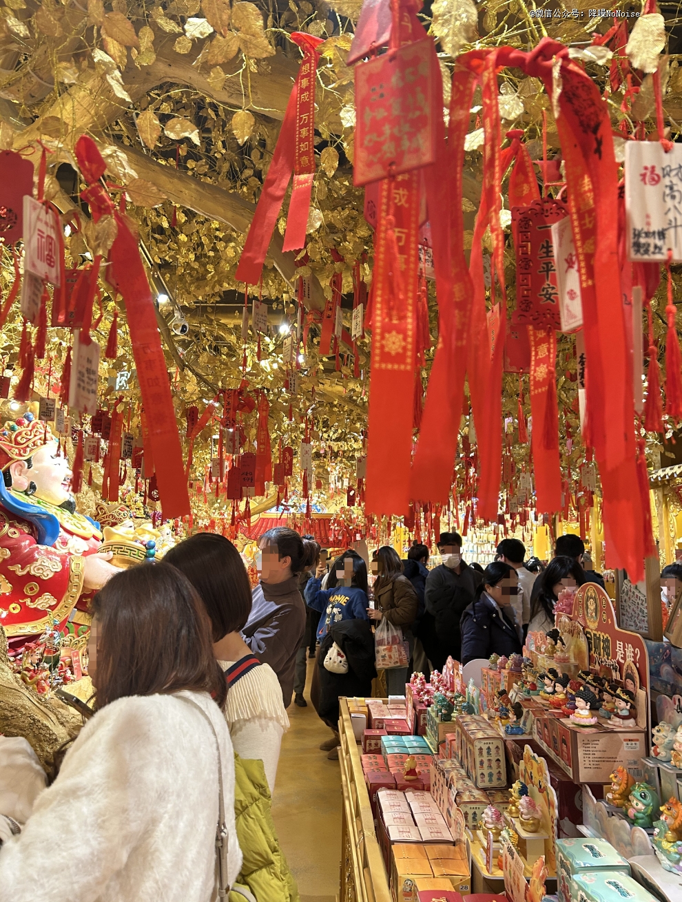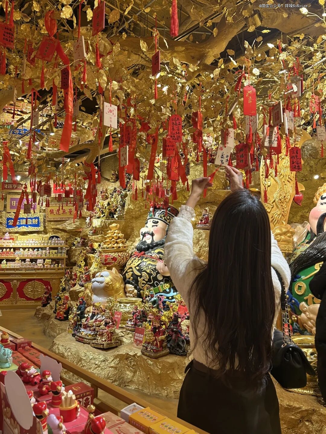 他从王府井站E1口出了地铁,随即推门进入王府井喜悦。原本上楼找餐厅的他,却被三楼一片金光截胡——里面的财神像正笑着冲他招手。