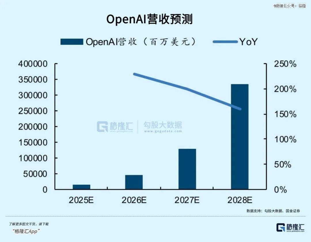OpenAI在2024年营收的为37亿美元,2025年保守估计127亿美元,同比增长243%。