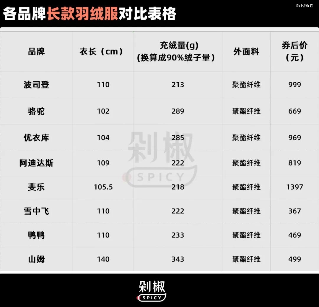 从中我们可以看出,即使不考虑价格,山姆的400g RR羽绒服也是鸭绒长款中换算下来最“暖和”的。