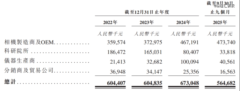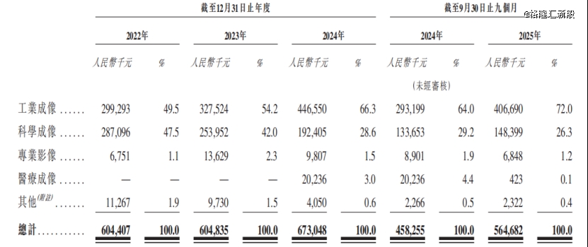 2025年1-9月,公司来自工业成像的收入占比约72%,来自科学成像的收入占比为26.3%。