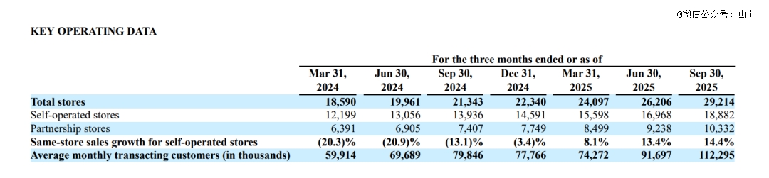 过去一个季度,瑞幸新开了超 3000 家门店,单季新增门店数量创下自 2022 年以来新高。现在,瑞幸门店总数达到了 29214 家,联营门店也就是加盟门店首次突破 1 万家,同比增长达 39.5%。当季,瑞幸月均交易用户数同样创下历史新高,首次突破 1 亿大关达到 1.12 亿人,同比增长 40.6%。