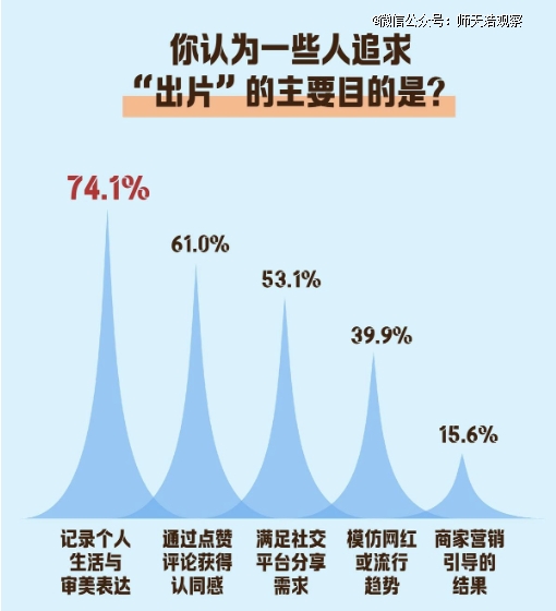 出片的根本是维系与特定他人的情感与互动空间的一种方式,使得个体之间产生接近的生活经历和背景,目的是构建或拓宽社交互动空间。