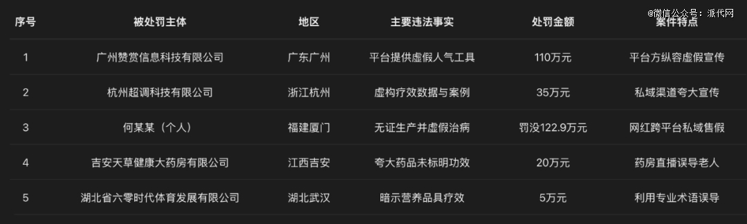 12月19日,国家市场监管总局集中通报,五起私域直播虚假宣传典型案例,处罚对象覆盖“平台、服务商、运营方、线下门店”全链条,涉及刷人气/刷单、虚假宣传、缺乏产品资质等,最高单笔罚没金额达122.9万元。