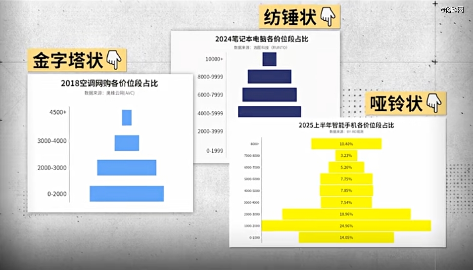 但在2025年上半年,手机市场走成了一个奇怪的近似哑铃状,中间细两头大,尤其是3000-4000元机型的占比,正极速萎靡。