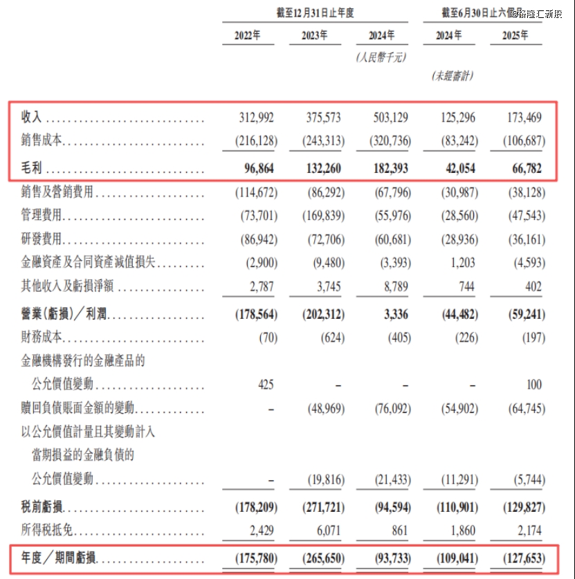 2022年、2023年、2024年及2025年1-6月(报告期),公司的收入分别为3.13亿元、3.76亿元、5.03亿元、1.73亿元,2022年至2024年的复合年增长率为26.8%。