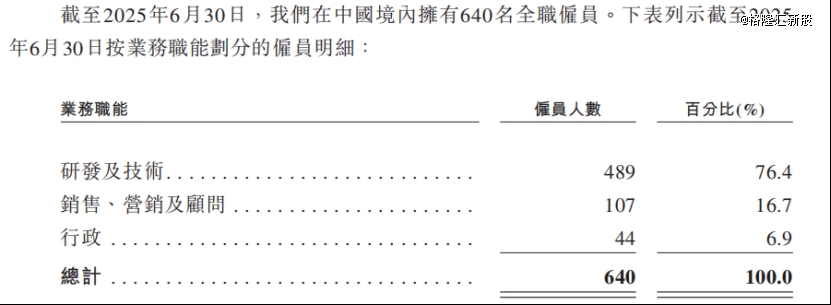 研发方面,截至2025年6月末,海致科技在中国境内拥有640名员工,其中研发及技术团队有489名成员,占比76.4%。