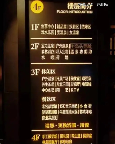 如下图所示:下面这家洗浴中心从1楼到4楼,几乎囊括了茶室、咖啡厅、疗养区、餐厅、亲子乐园等各种服务场景。