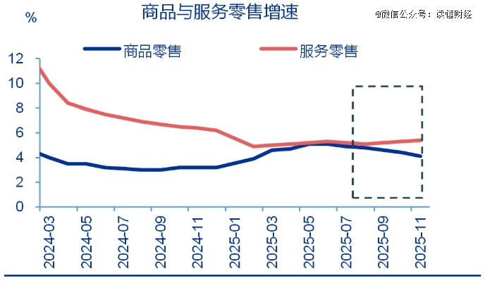 过去几年,服务消费的增长趋势要好于商品消费。如下图所示,根据申万宏源的数据,2024年3月以来,服务消费各月份增速均高于商品消费增速。