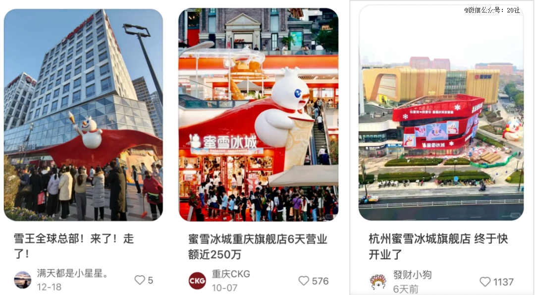 比如蜜雪冰城。也许是此前旗舰店吸引客流的实力得到验证,杭州旗舰店选址反而在相对偏僻、客流惨淡的西溪银泰。