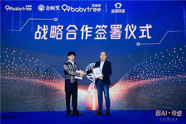 在这样的背景下,12月10日举行的第十一届金树盛典上,母婴家庭服务平台宝宝树与途家民宿正式达成战略合作。双方将围绕亲子家庭出行场景,探索“民宿+育儿”的融合模式,共同打造更贴合新一代家庭需求的住宿与生活方式体验。