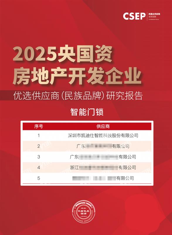 此次入选,是对Kaadas凯迪仕综合实力的高度认可。未来,Kaadas凯迪仕将以该荣誉为新起点,持续深化技术创新、严控品控流程、优化服务体系,与央国资房企深度协同,以扎实的产品与服务赋能“好房子”建设,为地产及建筑行业高质量发展贡献力量。