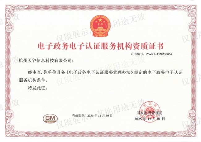 近日,e签宝(天谷CA)通过国家密码管理局的资质审查,获颁《电子政务电子认证服务机构资质证书》(政务CA证书)。