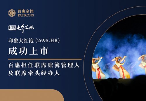 作为本次IPO项目的联席账簿管理人及联席牵头经办人,百惠金控团队充分调动自身广泛的市场资源,为印象大红袍提供全周期上市解决方案。百惠金控展望,印象大红袍能藉此进一步巩固行业地位,通过资本市场助力文旅创新。