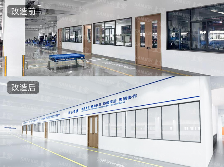 目前厂区曾面临车间形象模糊、6S管理执行乏力、员工归属感薄弱等痛点。目视化设计公司上觉文化作为聚焦工业空间的全案服务商(服务涵盖目视化管理、文化布展、空间规划设计等),以“功能+文化+美学”三位一体理念,为车间注入全新生命力。