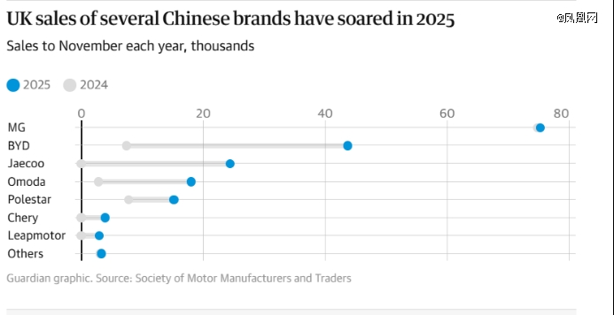 这也就意味着,2025年英国售出的每十辆新车中就有一辆来自中国品牌。