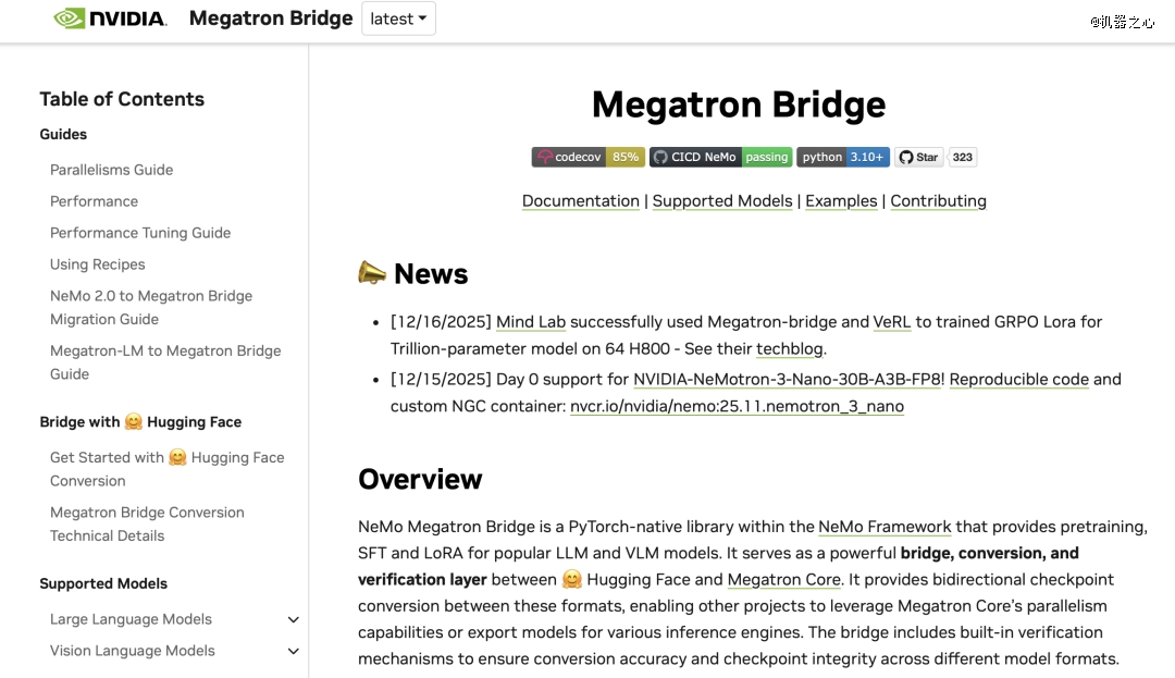 系统:统一调度张量 / 流水线 / 专家 / 序列并行,针对 MoE 路由不均衡与通信压力做了专项优化。相关技术已贡献至 NVIDIA Megatron-Bridge 与火山引擎 verl 等开源项目。