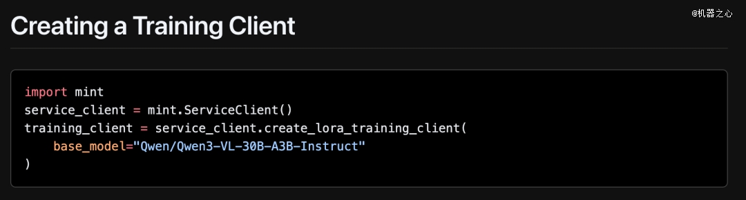 开发体验上:MinT 完全兼容 Tinker API,现有代码可快速适配,切换不同模型只需一行代码。目前已支持 Qwen、Kimi 等先进的开源大模型。