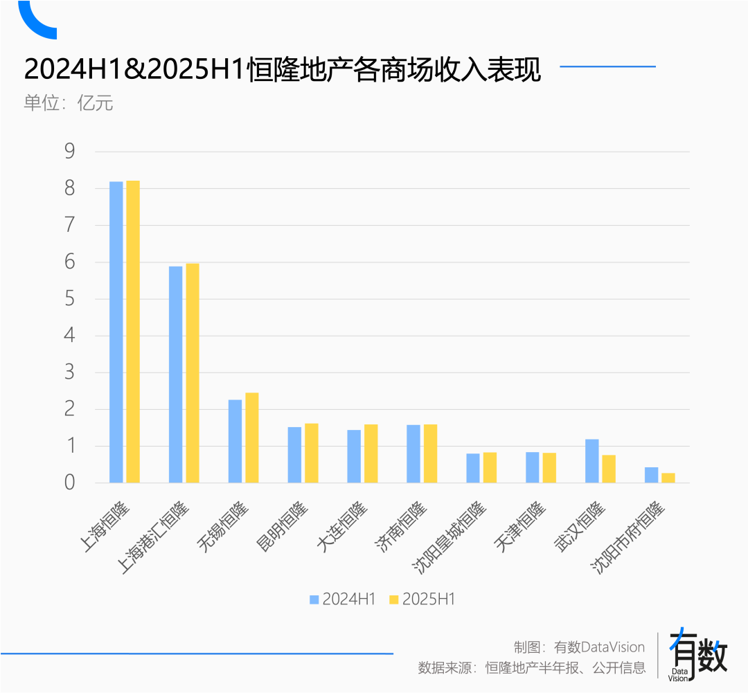 租客开始割肉,房东就没办法收粮。按照25年上半年的口径,恒隆在武汉和沈阳的两个项目,租赁收入同期对比分别下降36%和37%[1]。上海兴业太古汇和前滩太古里租金收入,分别下降6%和10%[2]。