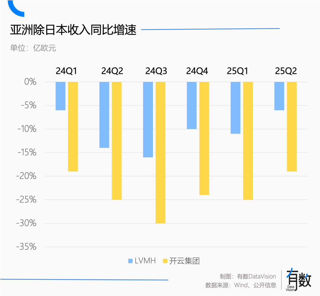 从奢侈品集团的经营看,按照最接近中国市场情况的“亚洲除日本”口径观测,2024年到现在,几乎没什么好消息。
