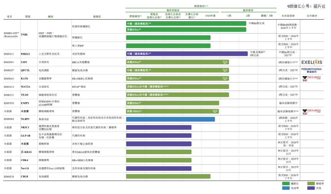 我们在AI Biotech第 一股,深度拆解(平台篇)详解了公司有着强大而全面的AI制药开发平台,且商业模式“多条腿走路”分散了单一风险,但之所以英矽智能被医药界视为“更有医药血统”的AI制药第 一股,很大程度在于公司有大量自研管线在持续推进。