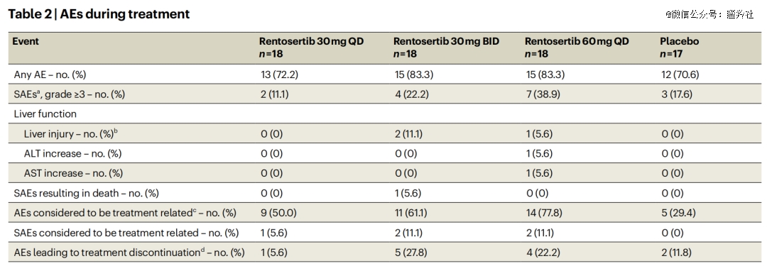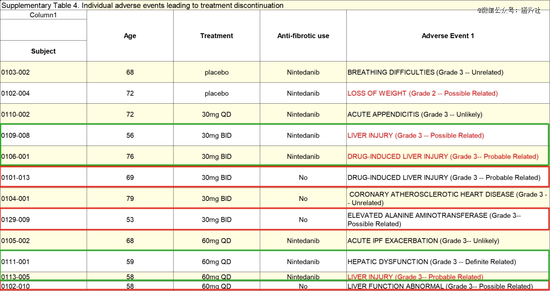 我们再仔细翻看Rentosertib在IIa期的一些治疗相关的不良反应事件,不可避免的有一些担忧,展示出来以供大家理性探讨。