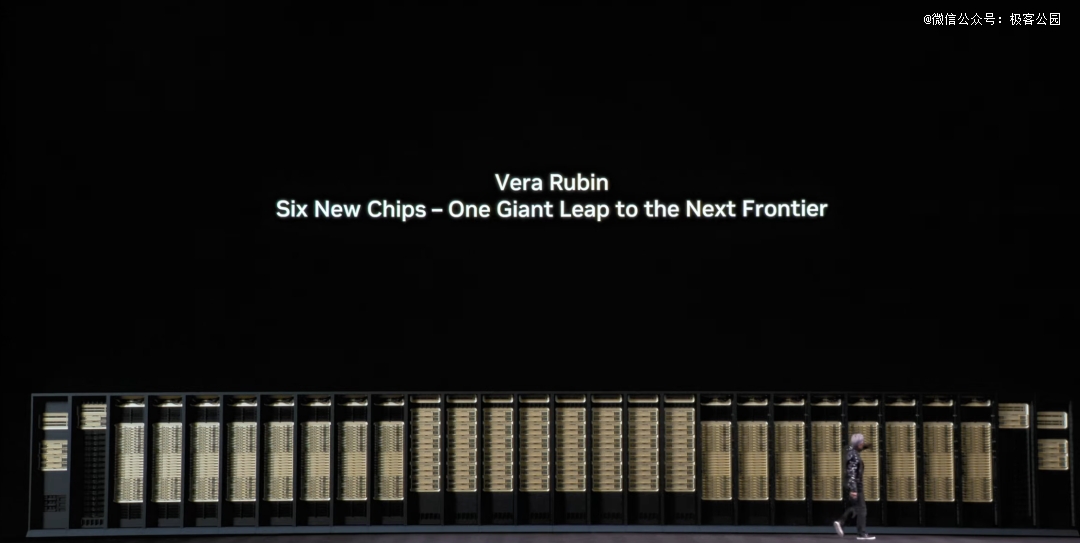 讲完产业,黄仁勋最后把话题拉回硬件,介绍 Vera Rubin。
