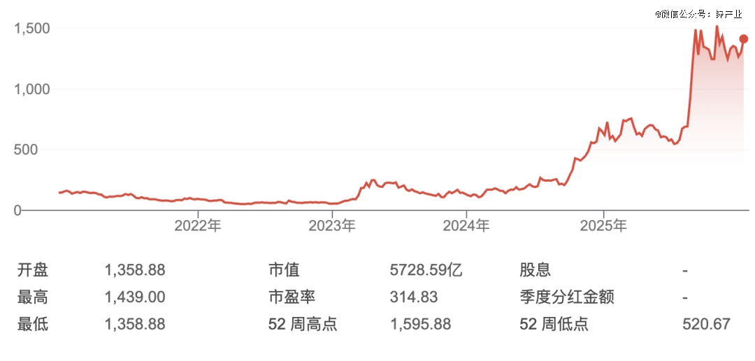 从国内来看,即便是尚未盈利的寒武纪,股价也在今年8月突破了千元,成为继茅台之后A股第二支千元股,寒武纪市值由此也在短短一个月内暴涨了1500亿元,突破4000亿元。