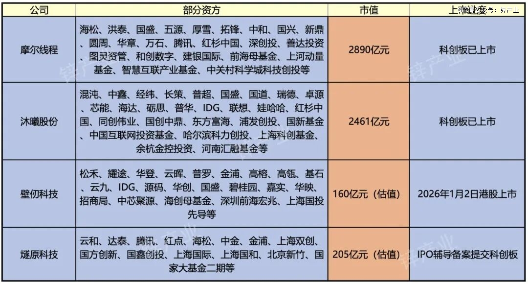 同样被资本热捧的还有国产GPU四小龙,从过往融资经历来看,四小龙已经成为明星标的,每家身后都站着一整个明星投资机构方阵。
