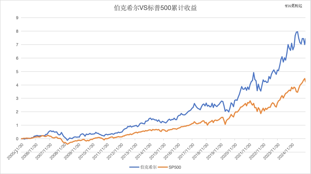 其核心逻辑在于,只投资自己看得懂的公司,并追求长期、稳健的确定性回报。这一策略使得伯克希尔在很长一段时间内显著跑赢大盘。36氪统计,伯克希尔近二十年累计投资收益率明显高于标普500指数。