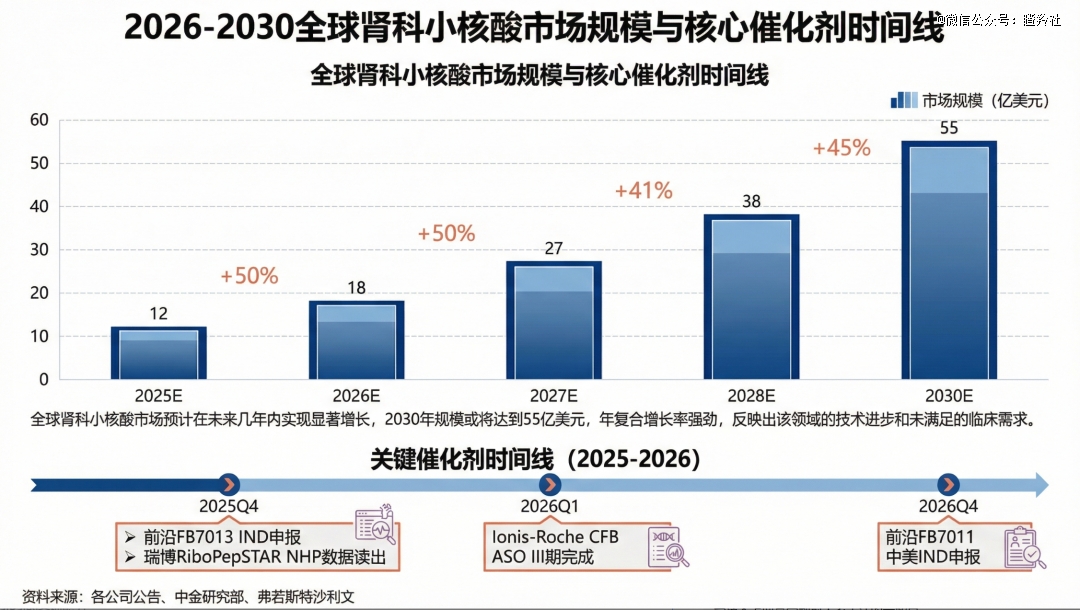 为何有如此判断?再生元每4周注射一次的靶向C5补体Cemdisiran将在2026年递交治疗全身重症肌无力(gME)的BLA,在成为首 个C5补体的小核酸药物的同时,在gME展现的疗效和安全性有望延展至IgA肾病和阵发性睡眠性血红蛋白尿(PNH);其次,2026年上半年Ionis/罗氏的CFB ASO管线Sefaxersen有望读出IgA肾病的三期数据,冲击肾病的第 一个小核酸重磅炸弹。