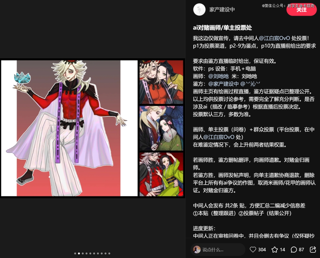 这个结果,让她明确了AI对赌一项重要的规则:画师和稿主的投票权重高于围观路人的投票权重。