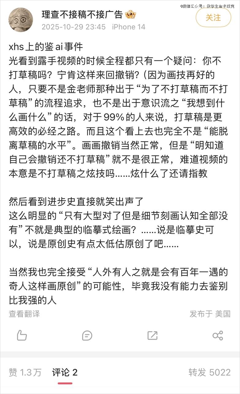 那时候很多人都觉得,绘圈鉴AI已经鉴魔障了,看什么都是AI。