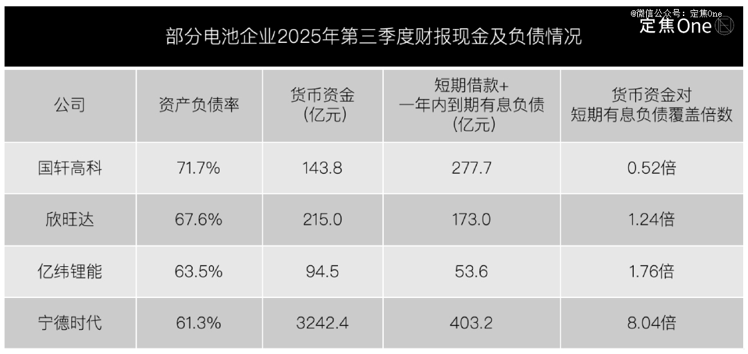 利润直接关系到现金安全。国轩高科(70%以上)、欣旺达(68%)、亿纬锂能(64%)的资产负债率均处于高位。