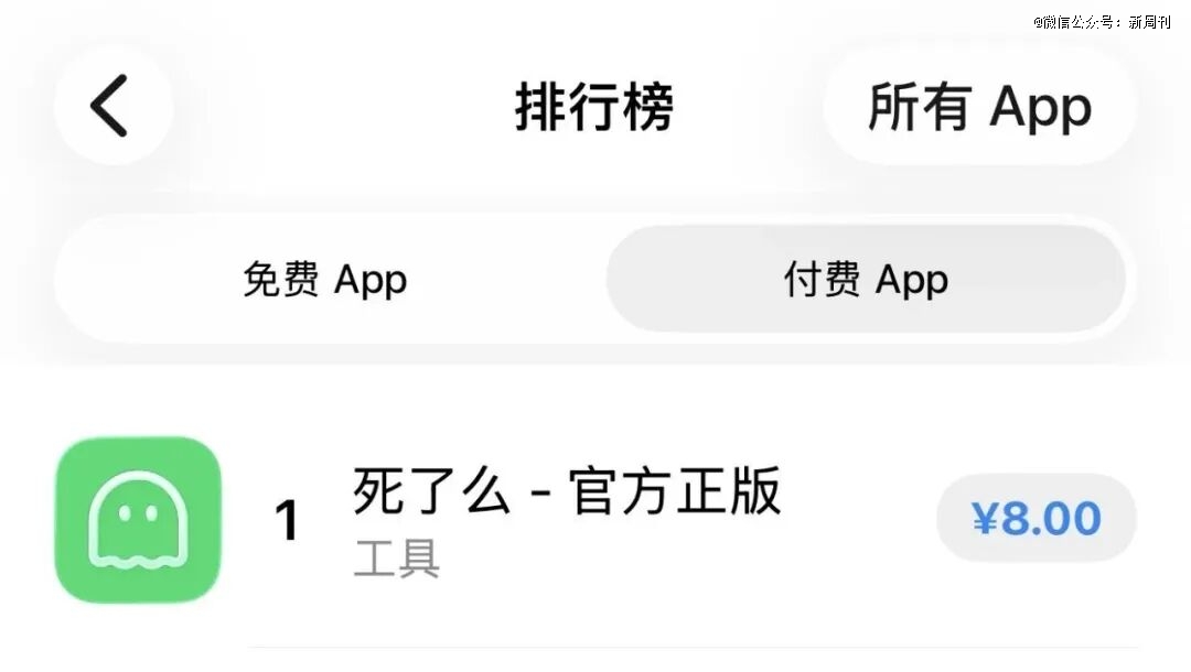 “死了么”App登顶苹果应用商店的付费榜榜首。