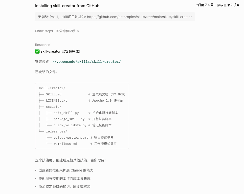 今天你就可以,把skill-creator装上,然后把你最常用的一个动作固化下来,比如选题筛热点,比如把报错日志变成修复方案,比如把一堆链接变成摘要和观点。