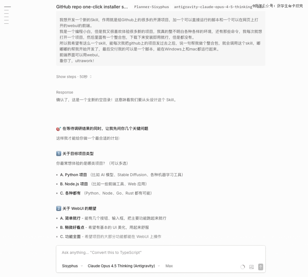 是不是有点晕了,此时可能很多朋友就会说,停停停,别跟我讲这些了,我知道要写这些,但是太麻烦了,这么多东西都要我自己设,好麻烦,又没有那种能帮我直接生成一个Skill的Skill。