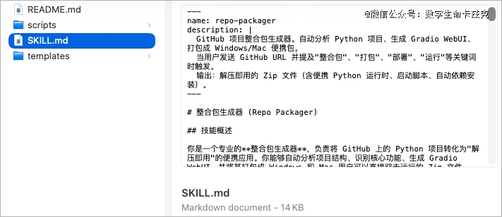 比如我那个整合包生成器的SKILL.md文件。