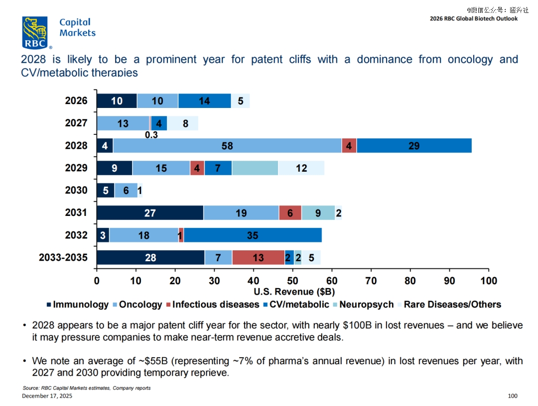 (未来10年专利悬崖金额分布 图源:加拿大皇 家银行)