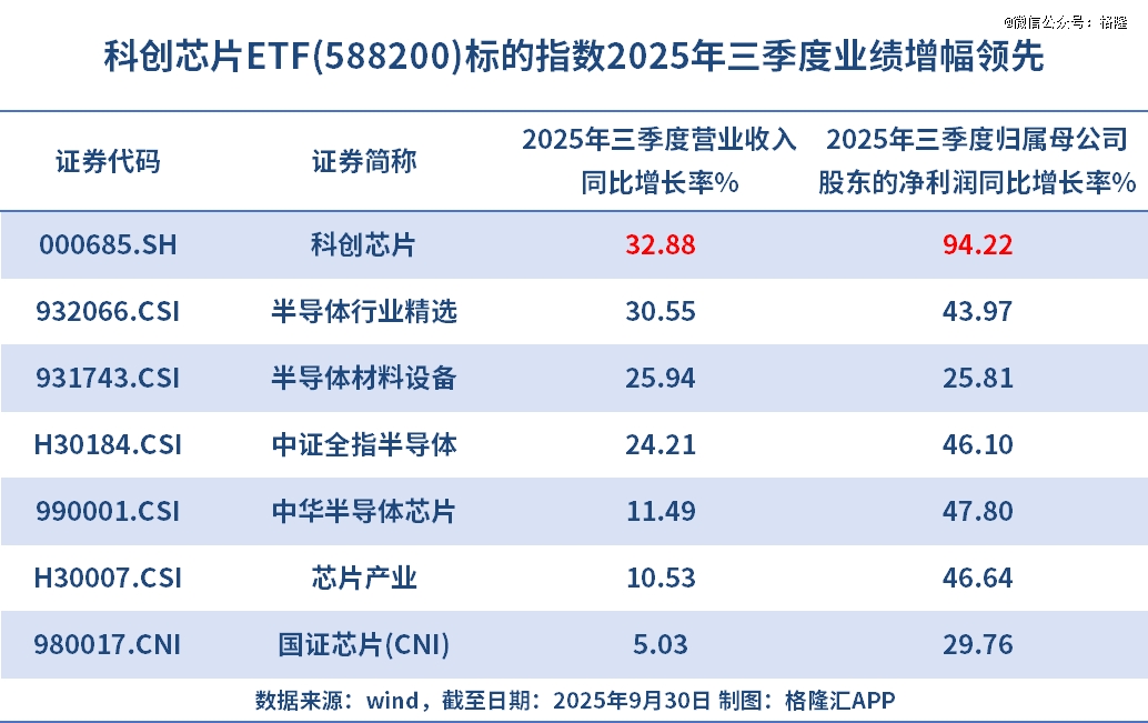 Wind数据显示,在2025年前三季度,科创芯片指数成份股的营收同比增长39%,净利润更是同比大增94%。