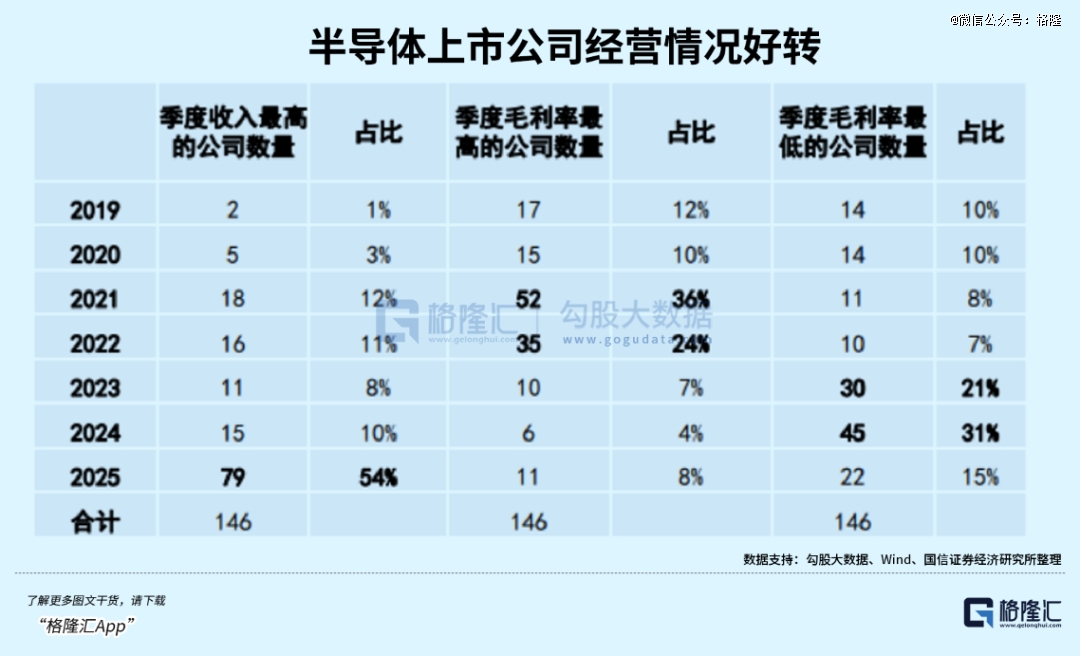 根据国信证券统计,在纳入追踪的146家A股半导体上市公司中,有高达54%的企业在2025年创下了单季度营收的历史新高。