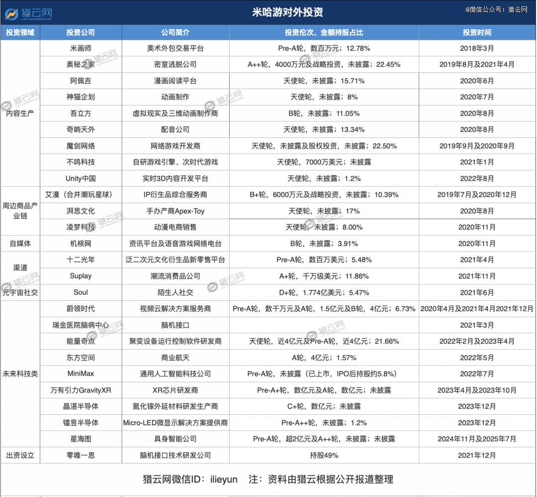 或许是创业初期四处碰壁的辛酸,过于深刻。于是,发迹后的米哈游,在关上外部投资的大门后,开启了对外投资的一扇窗。