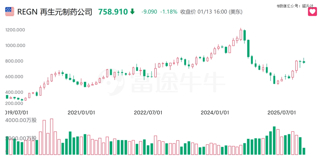 尽管度普利尤单抗在2024年已经成为自免领域的“药王”,但再生元的专利悬崖压力来自于另一款支柱产品阿柏西普,这种危机传导可以反映到公司股价上。
