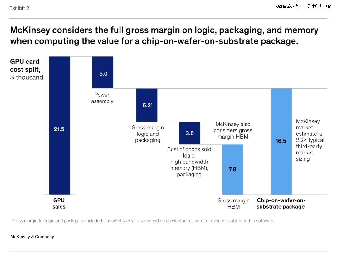 通常,分析师的估算仅将整个芯片封装(例如CoWoS)价值的一部分(例如逻辑和封装组件的成本和毛利润)分配给无晶圆厂公司。他们不会将HBM的毛利润分配给无晶圆厂公司,而是将其分配给存储器公司。
